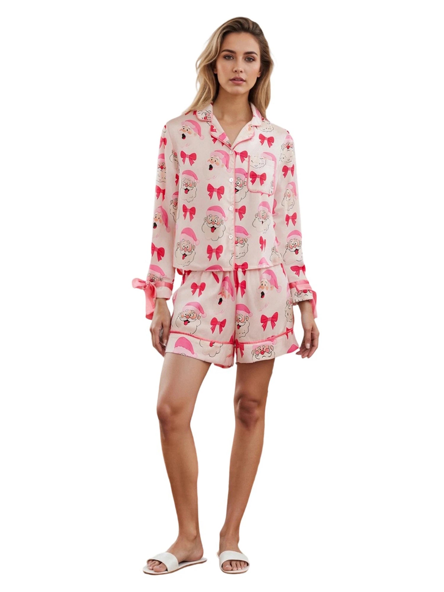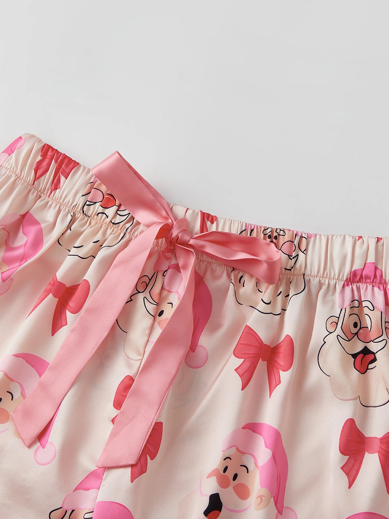 Christmas Family Pajamas Matching Set Santa Claus Print Short Sleeve Tops and Shorts
