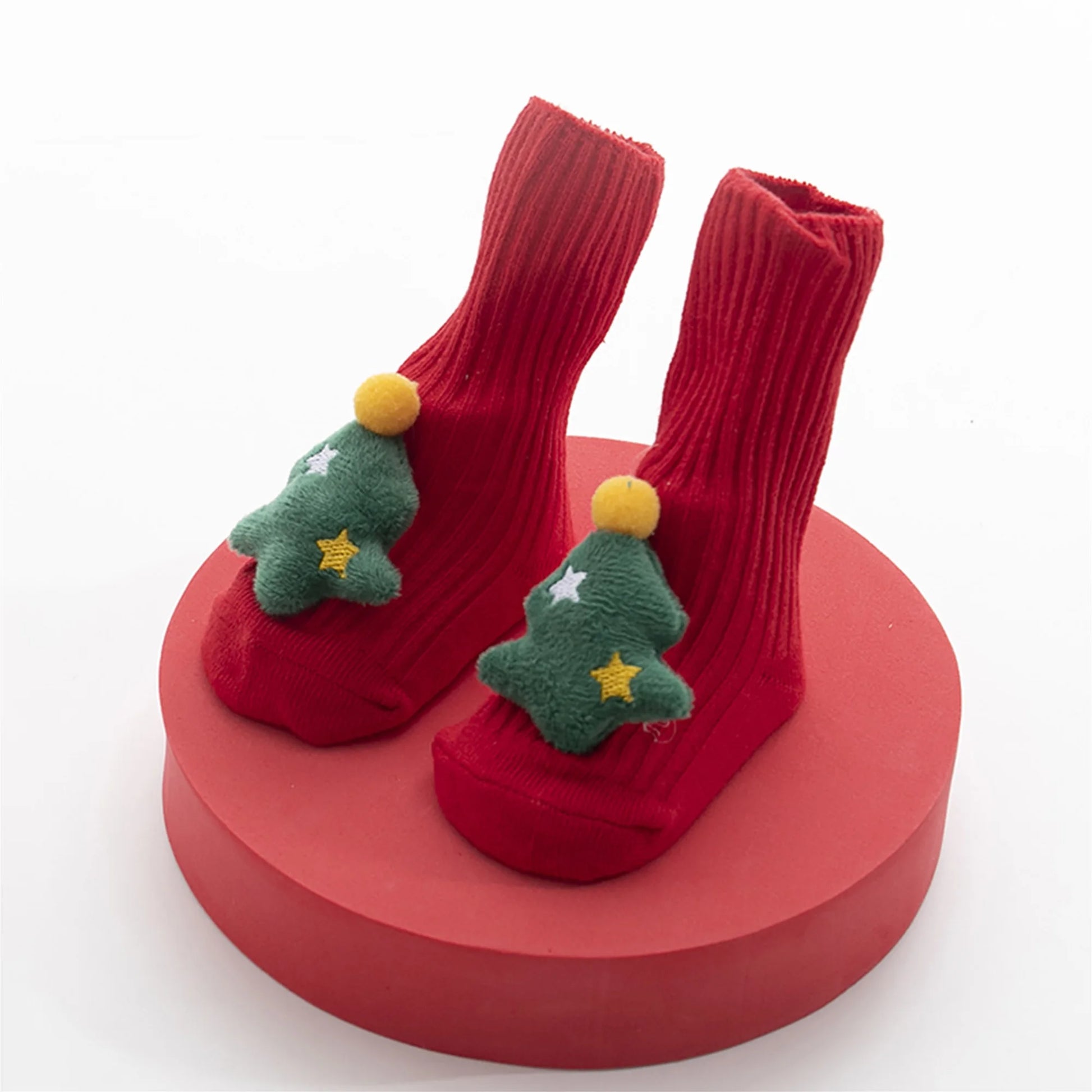 Baby Christmas Socks Cute Reindeer Santa Christmas Tree Non-slip Knit Socks for Winter Fall
