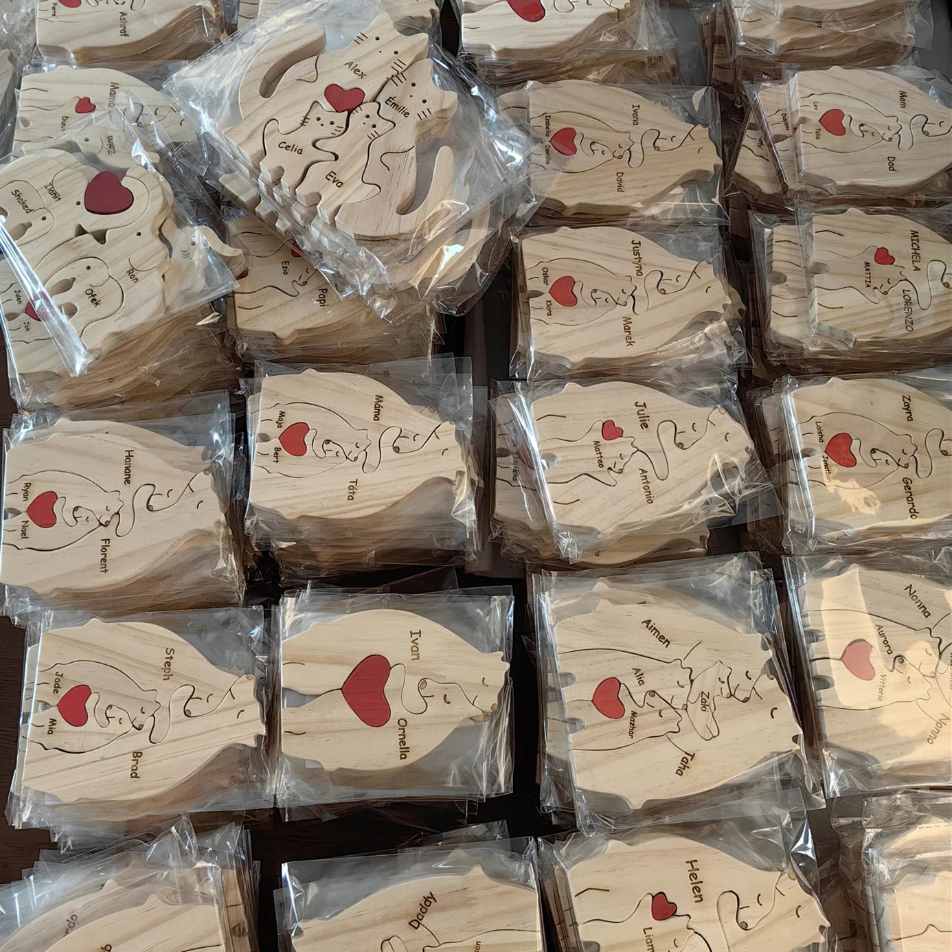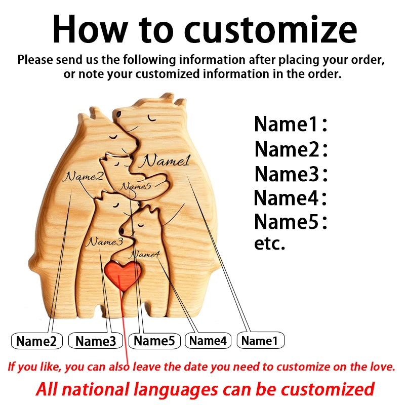 Art Wooden Bear Family Puzzle Personalized Name Custom Home Decor Thanksgiving Christmas Heartwarming Gift for Baby Mom