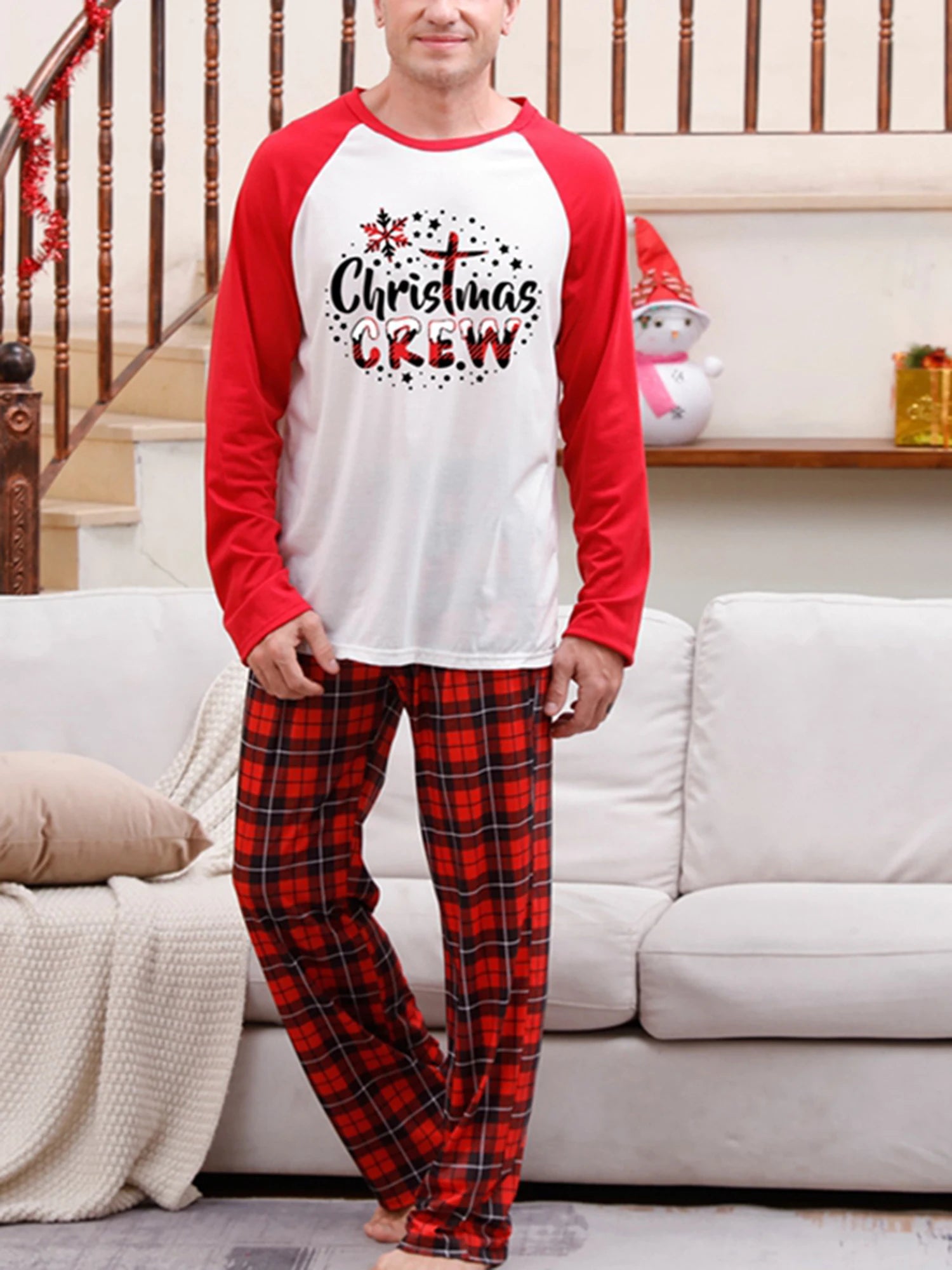 Christmas Family Pajamas Matching Set, Long Sleeve Letters Print T-shirt with Plaid Pants Sleepwear Loungewear