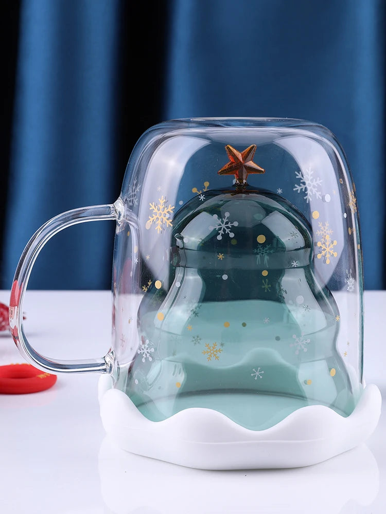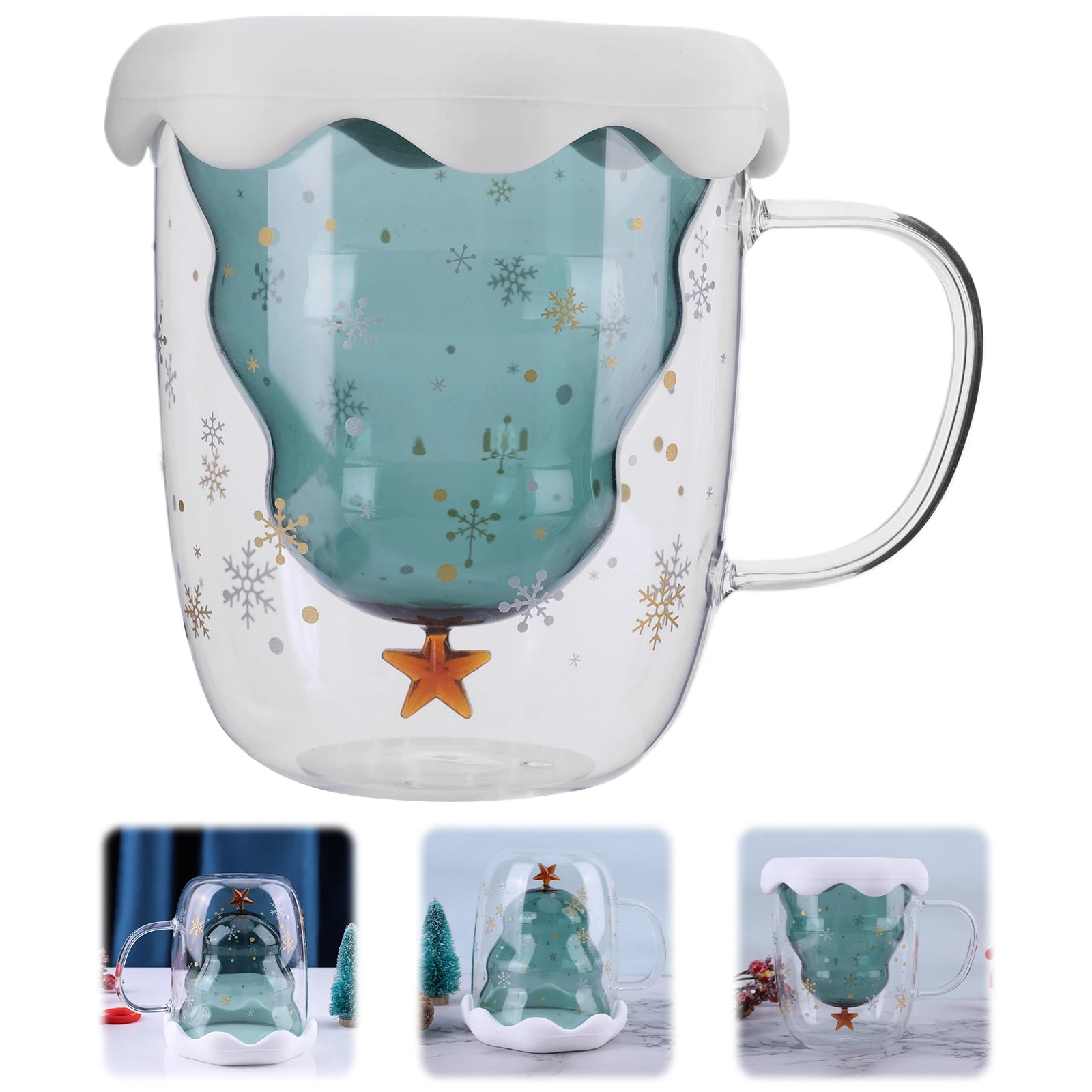 Christmas Tree Snow Scene Cup & Handle Christmas Clear Tree Coffee Mug Star Water Cup Valentine's Day Birthday New Year Gift