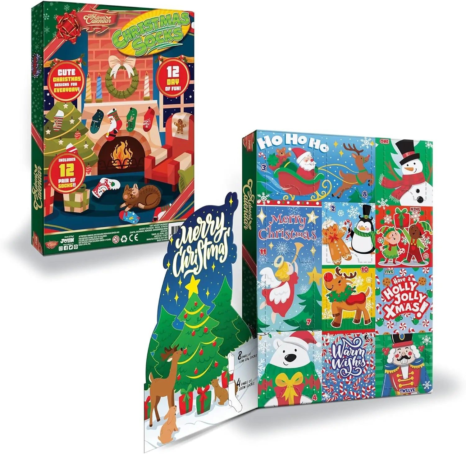 SUPER VALUE PACK.Our Advent Calendar includes 12 Packs Christmas Holiday Socks Advent Calendar with 12 socks: 8 short socks plus 4 long socks. Socks are packaged in colorful 12 Days of Advent Box Socks. Size: One Size Fits All for women.