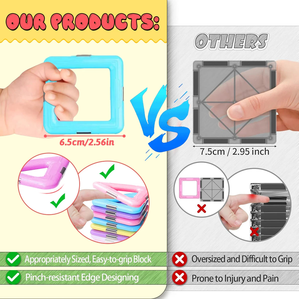 HIGHT QUALITY & SAFE :The magnetic tiles toys for 3 year old made of safe and durable ABS plastic.Magnetic tiles is great and works just as expected, not easy to collapse. Your kids are easy to hold and put together.