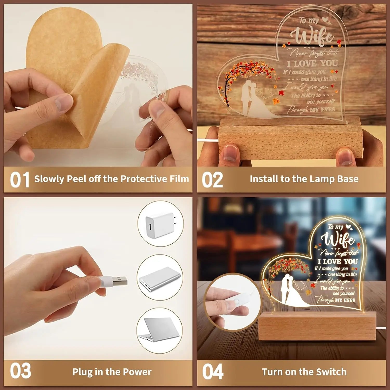 Personalized Acrylic Engraved Night Lamp Gift for Wife From Husband on Valentine's Day Birthday & Other Occasions